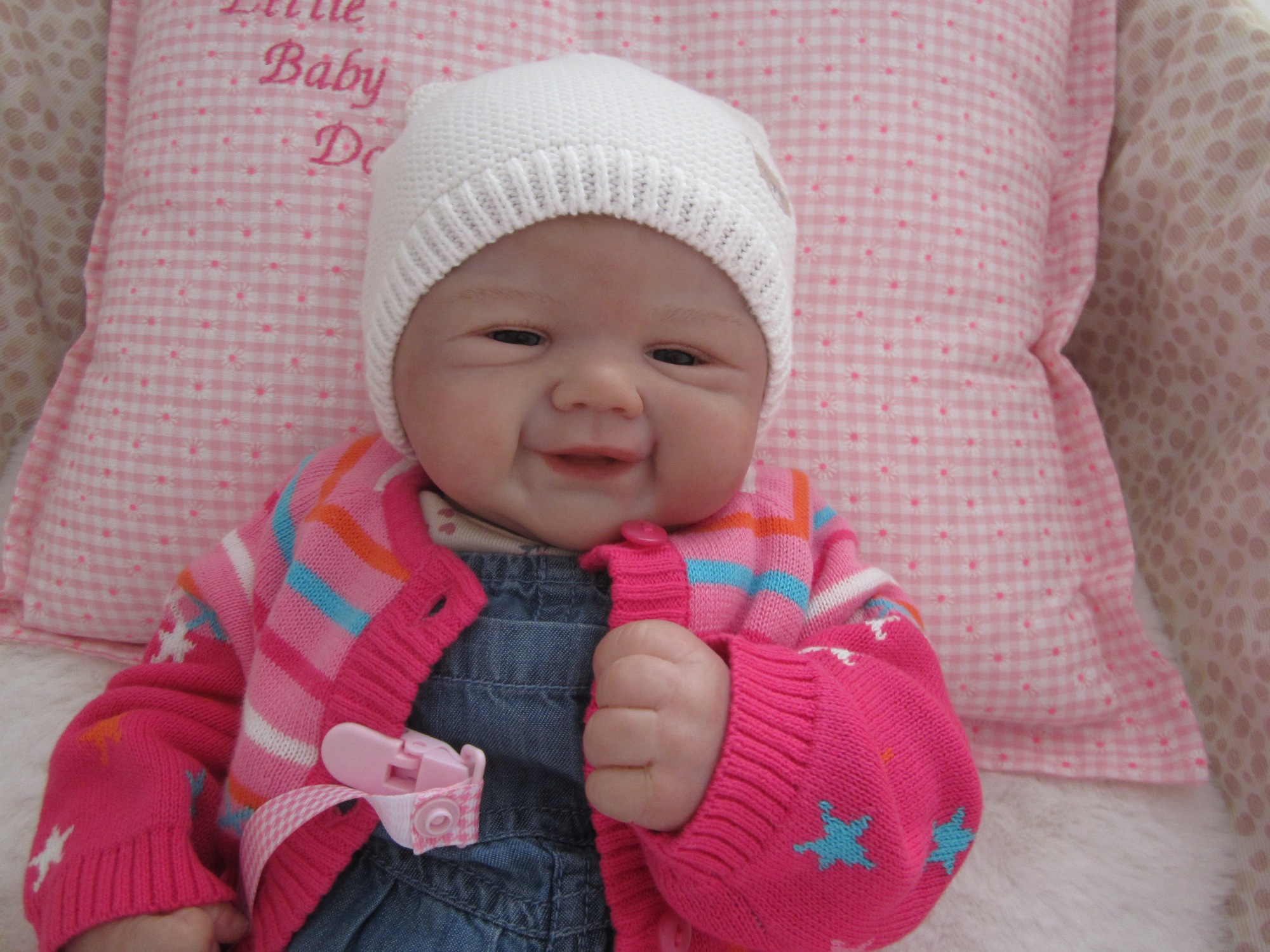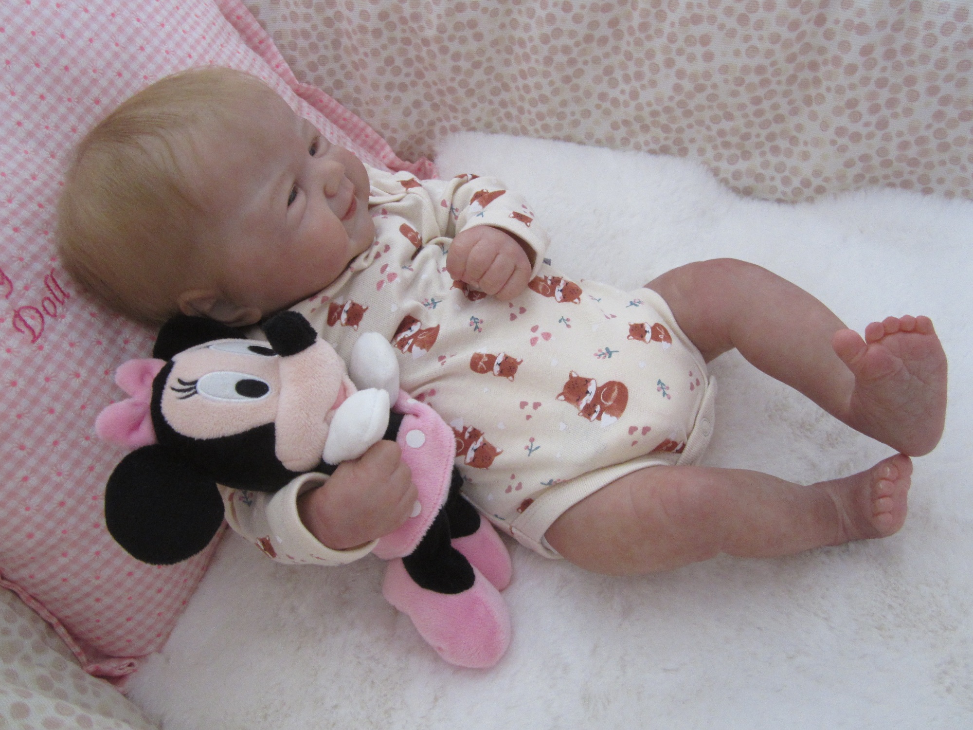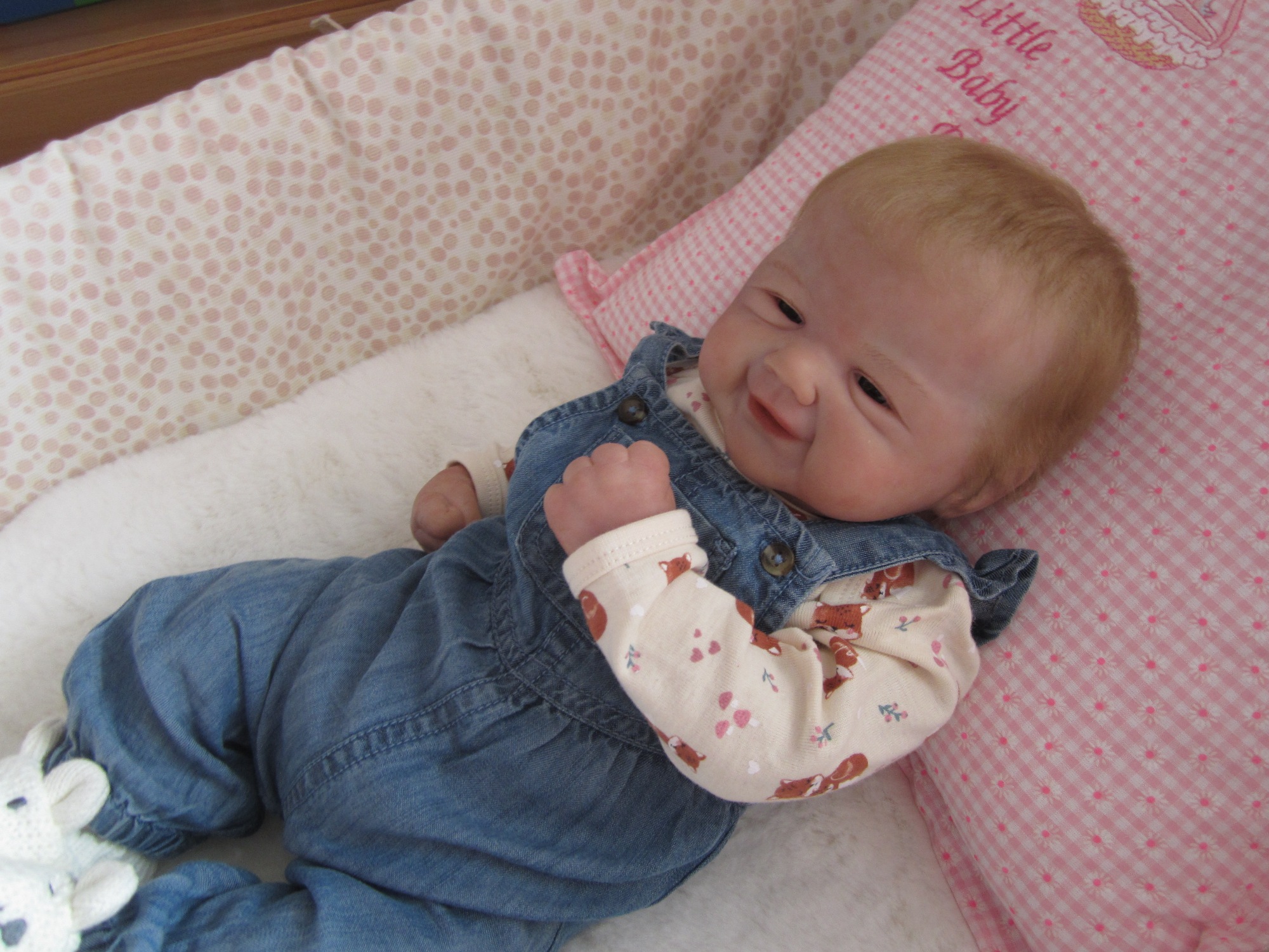 Die Kleine ist ein Bausatzmix. Der Kopf ist von Sandy Faber modeliert, Arme und Beine sind von einem Realbornbaby.