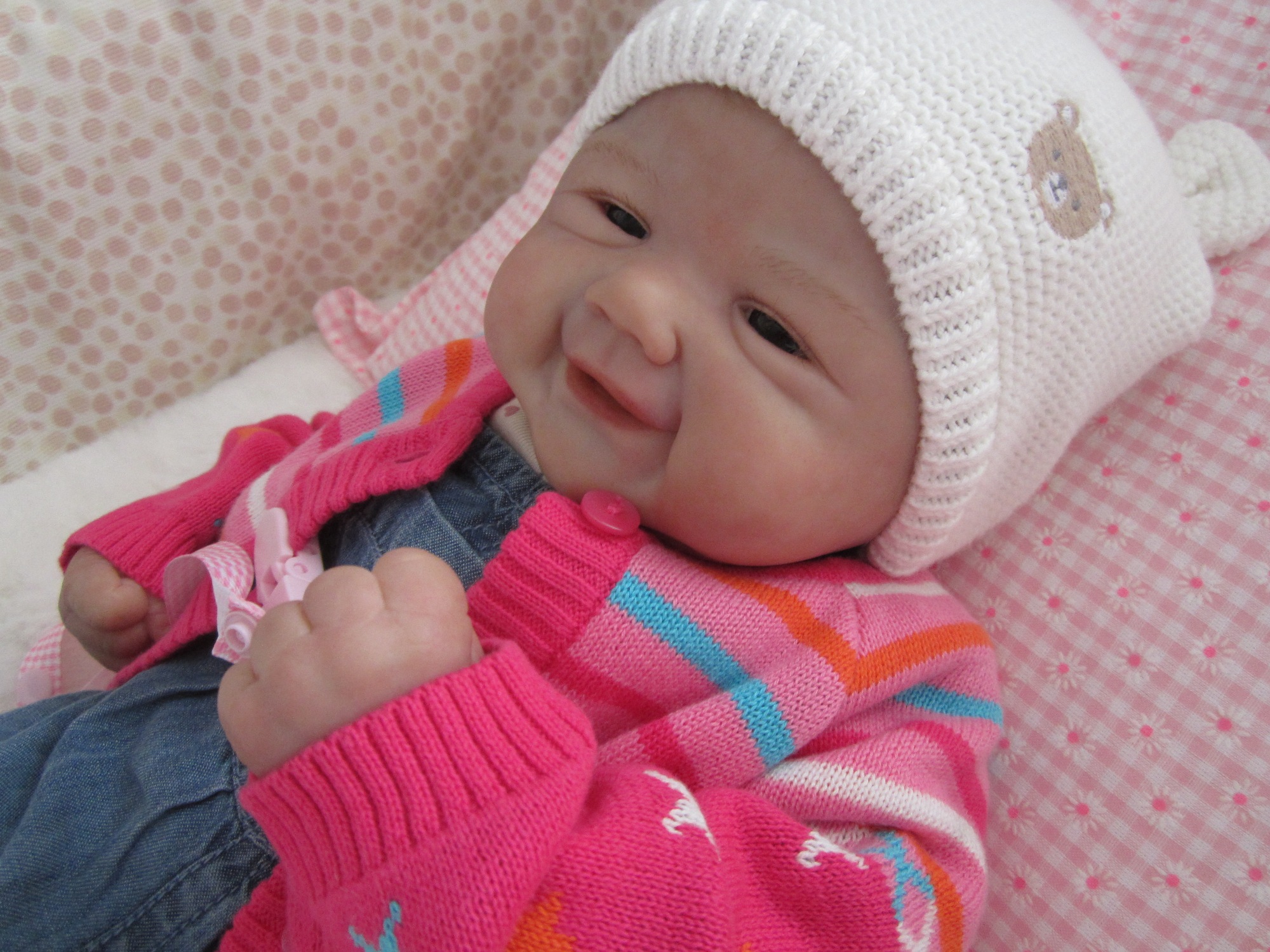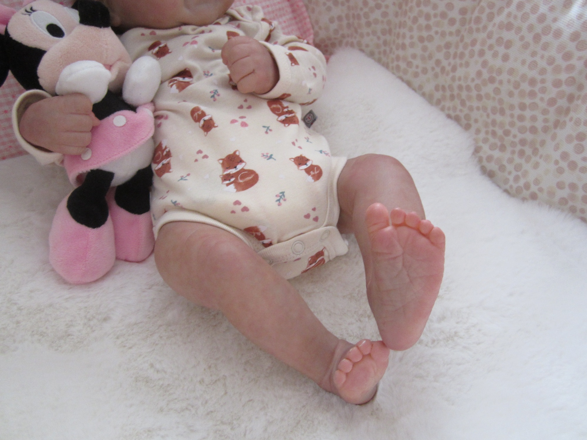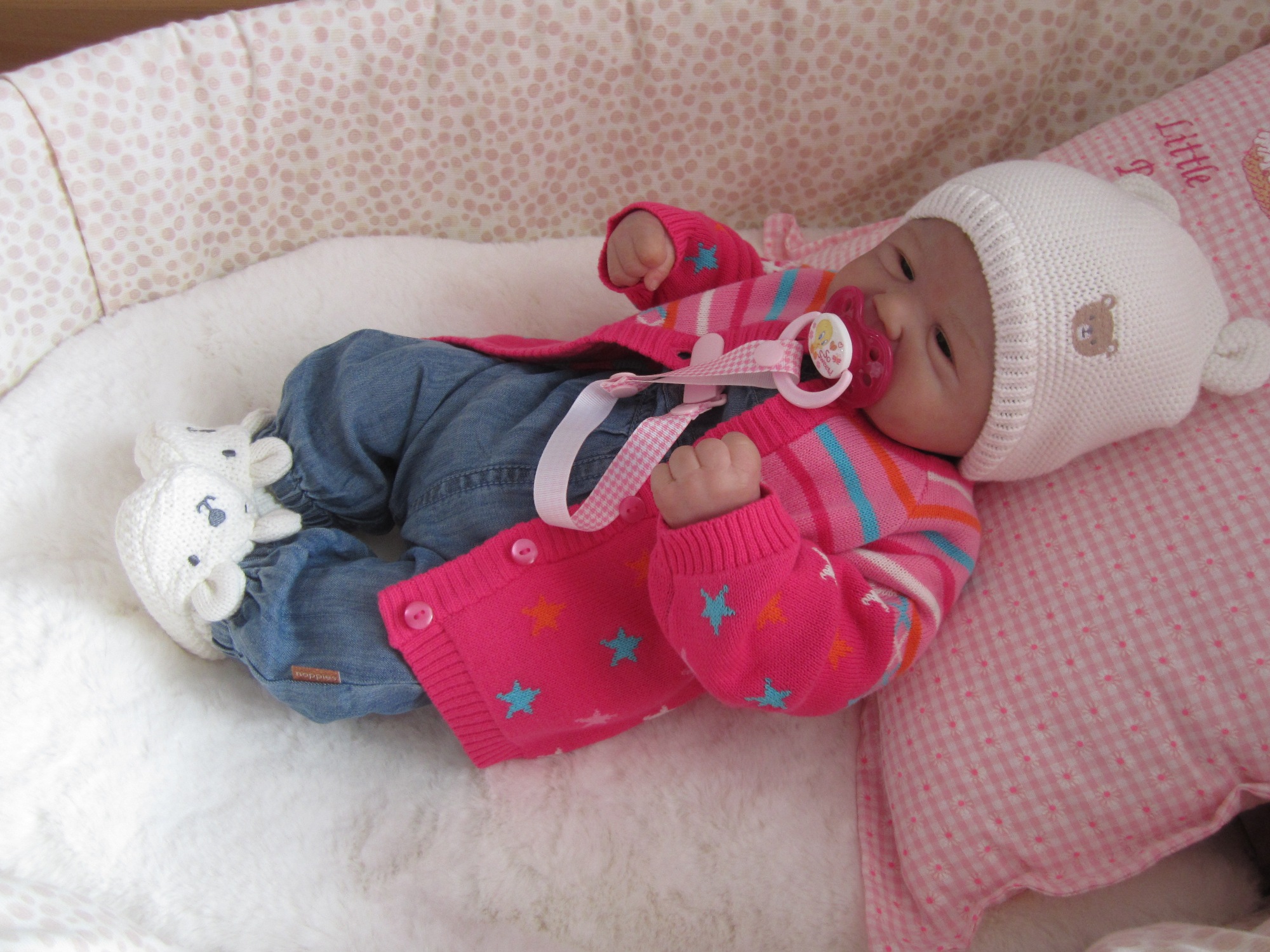 Die Kleine ist ein Bausatzmix. Der Kopf ist von Sandy Faber modeliert, Arme und Beine sind von einem Realbornbaby.